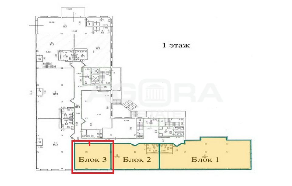 Офисное помещение площадью 85 м2 (блок 3 на плане этажа), расположено в здании БЦ класса В+ в районе Коптево (САО), близко от м.Водный стадион, Коптево, Балтийская. Помещение находится на 1-м этаже. Высота потолков в офисе 3,2 м, отдельный вход. Большие панорамные окна делают офис светлым, просторным и визуально увеличивают пространство. Есть озможность сделать собственный с/у. Коммуникации – центральные. С ремонтом.