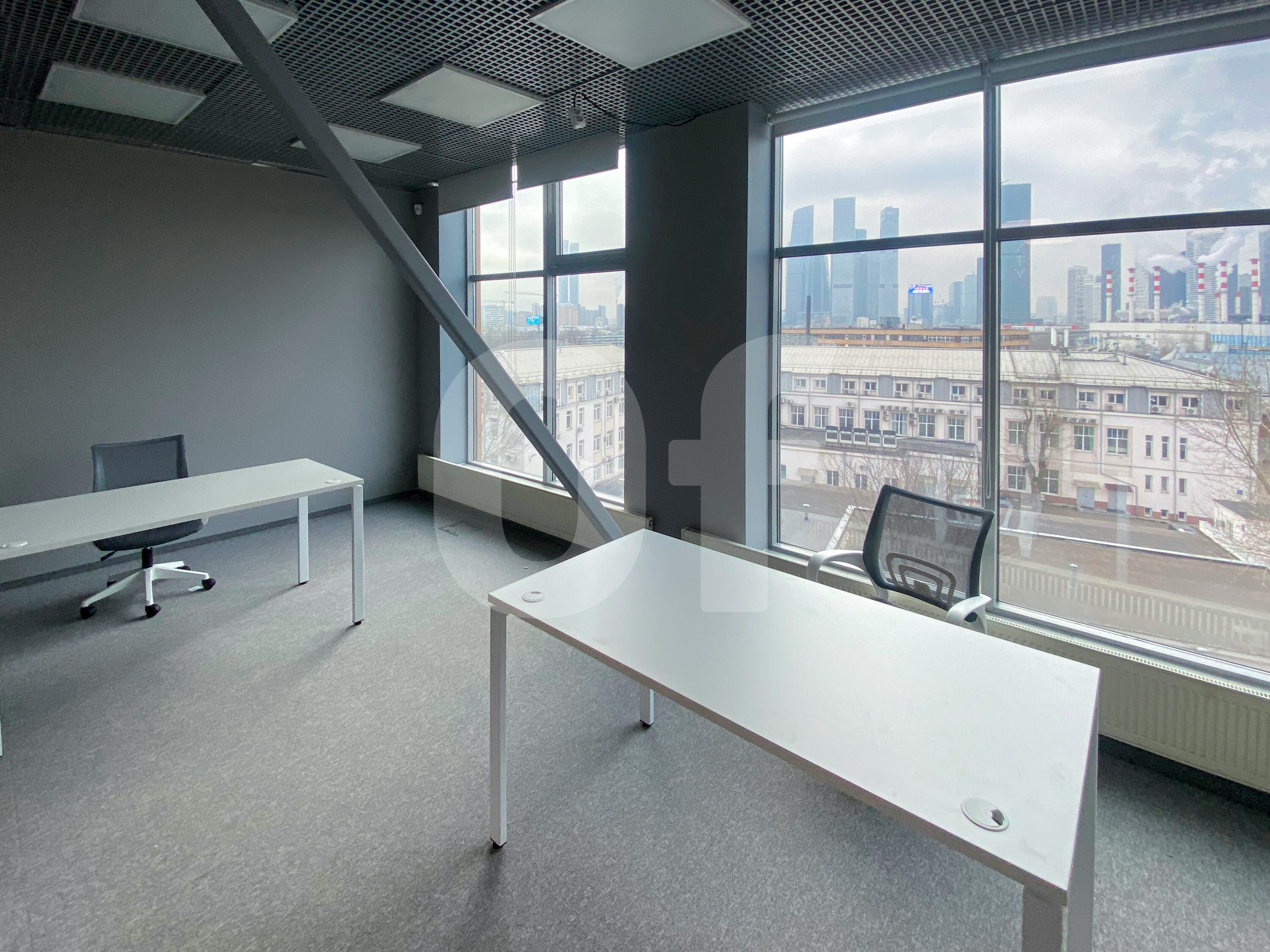 Панорамное остекление. 2 больших опенспейса, множество кабинетов, ресепшен, просторную кухню с полным комплектом техники, серверную комнату, гардеробную, архив и 5 санузлов (включая душевую).