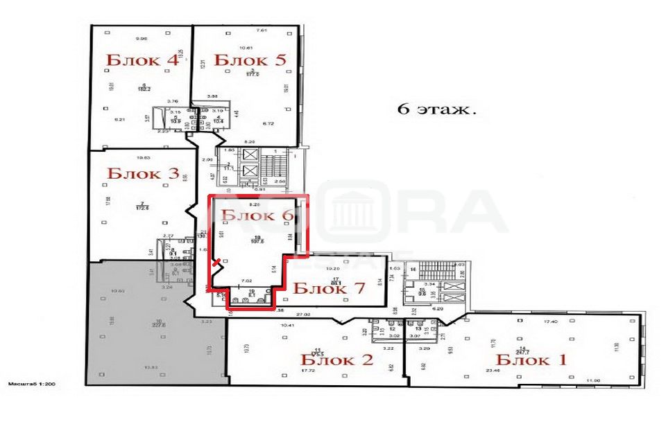 Офисное помещение площадью 116,7 м2 (блок 6 на плане этажа), расположено в здании БЦ класса В+ в районе Коптево (САО), близко от м.Водный стадион, Коптево, Балтийская. Помещение находится на 6-м этаже. Высота потолков в офисе 3,2 м, отдельный вход. Большие панорамные окна, делают офис светлым, просторным и визуально увеличивают пространство. Есть мокрая точка. Коммуникации – центральные. С ремонтом.