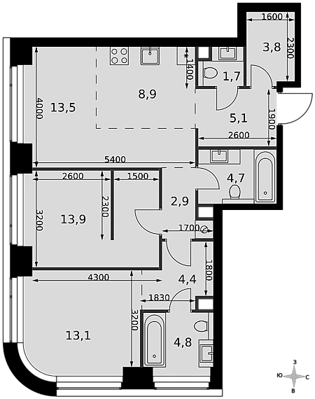 Продается 3-к. квартира квартира номер 778 общей площадью 82.4 кв.м. на 2-м этаже 7 этажного дома, корпус UNIQUE (премиум-класс). Без отделки.