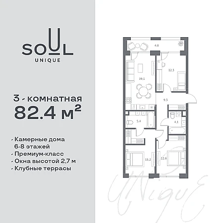 Купить 3к квартиру 82 м² в ЖК Soul (Соул)