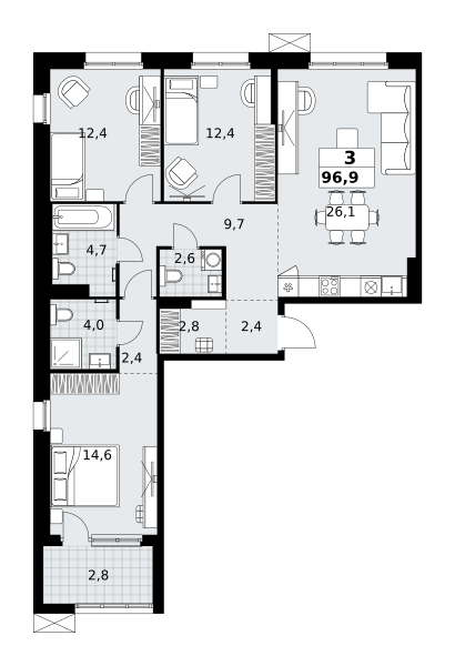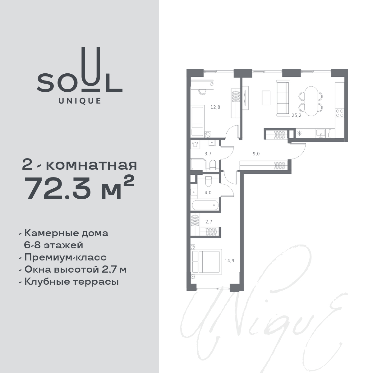 Купить 3к квартиру 76 м² в ЖК Soul (Соул)