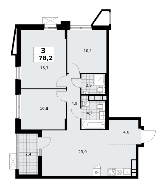 Продается 3-к. квартира квартира номер 187 общей площадью 76.7 кв.м. на 22-м этаже 25 этажного дома, Корпус 3. С отделкой White Box .