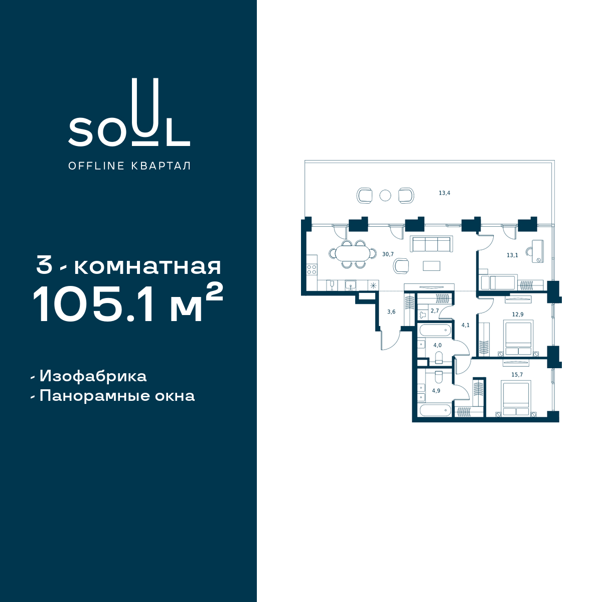 Купить 3к квартиру 105 м² в ЖК Soul (Соул)