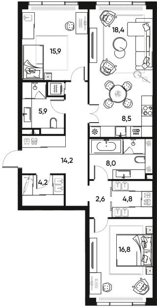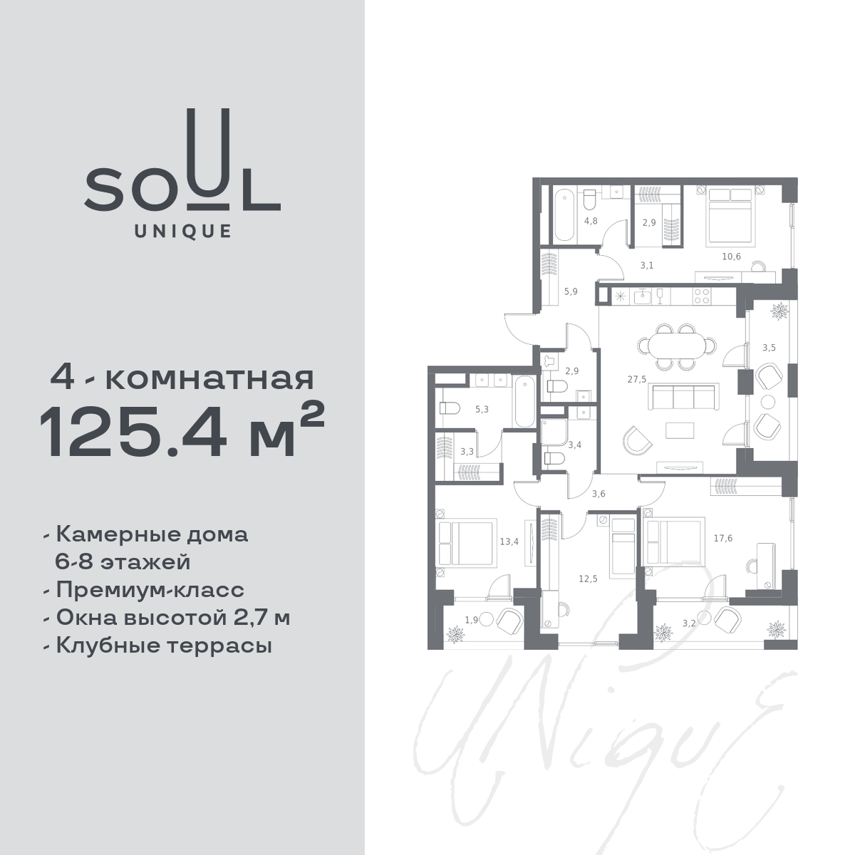 Купить 4к квартиру 125 м² в ЖК Soul (Соул)