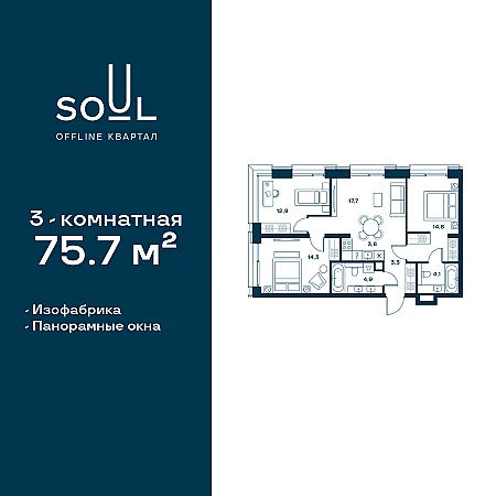 Купить 3к квартиру 75 м² в ЖК Soul (Соул)
