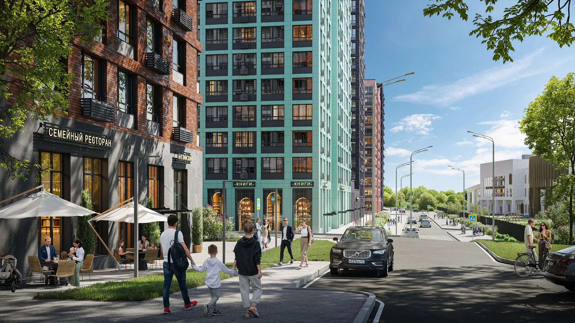 В проекте 2 детских сада на 100 и 200 малышей. Фит-рум, коворкинг, дизайнерские лобби, подземный паркинг и келлеры.