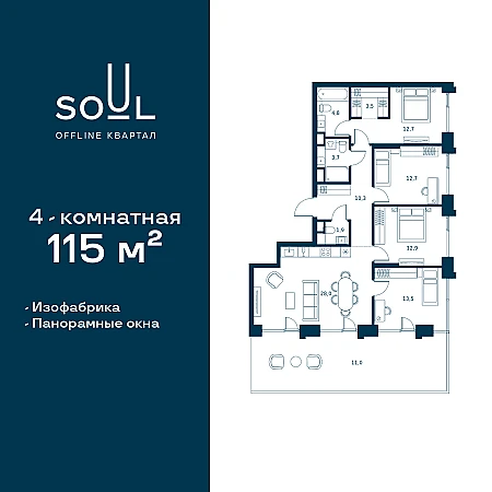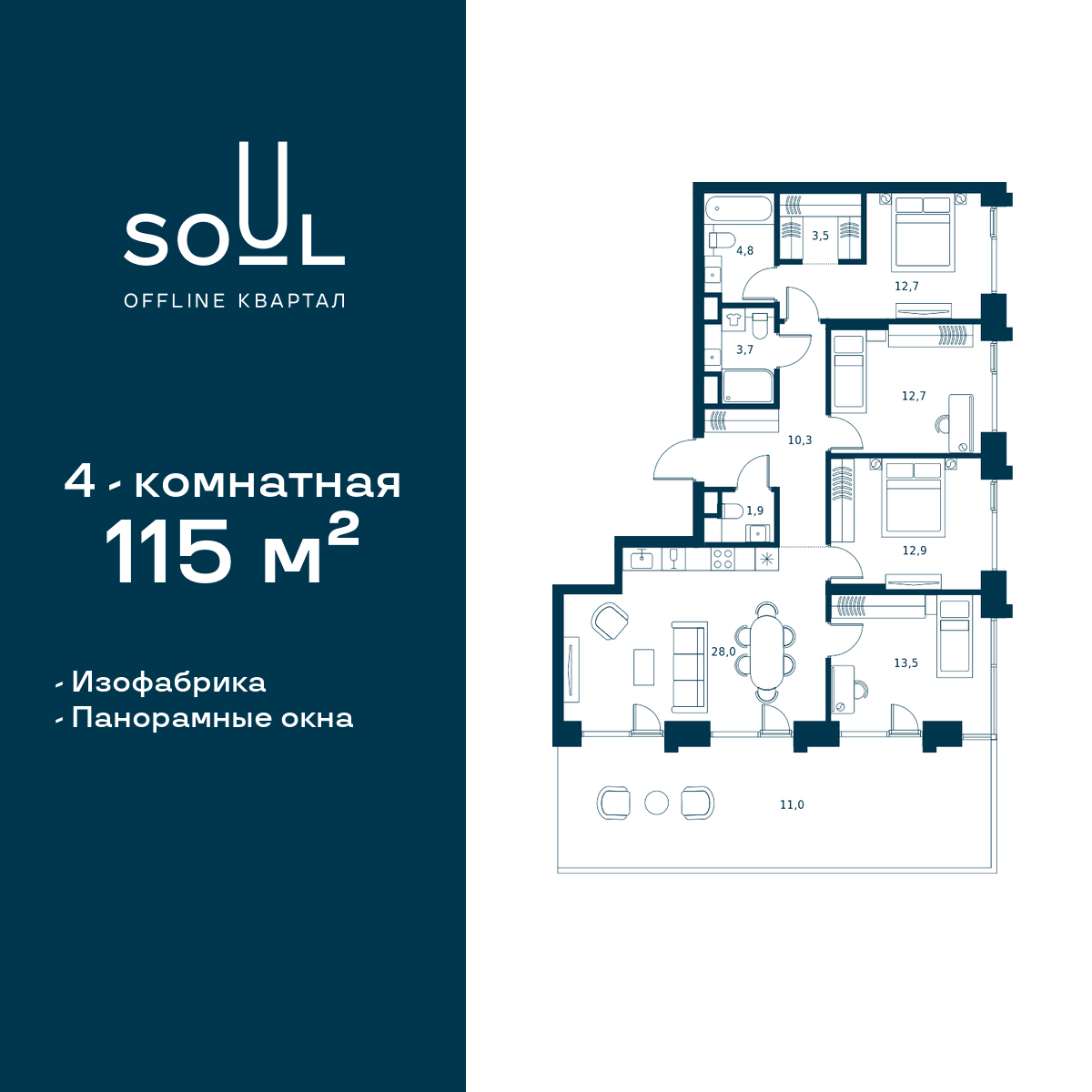 Купить 4к квартиру 115 м² в ЖК Soul (Соул)