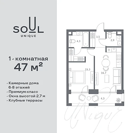 Купить 1к квартиру 47 м² в ЖК Soul (Соул)