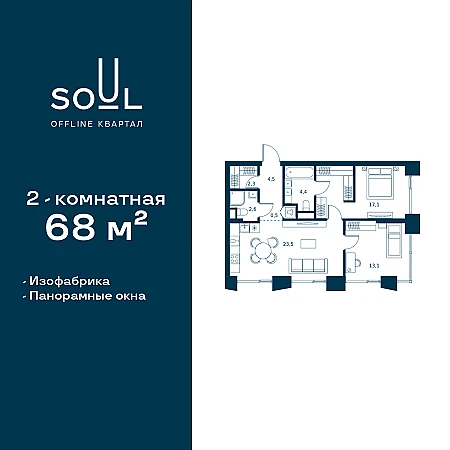 Купить 2к квартиру 68 м² в ЖК Soul (Соул)