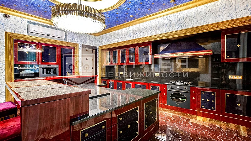 Изысканный особняк с дизайнерским интерьером. В отделке дома использованы материалы: натуральный камень, мрамор, сусальное золото. Установлена авторская итальянская мебель.