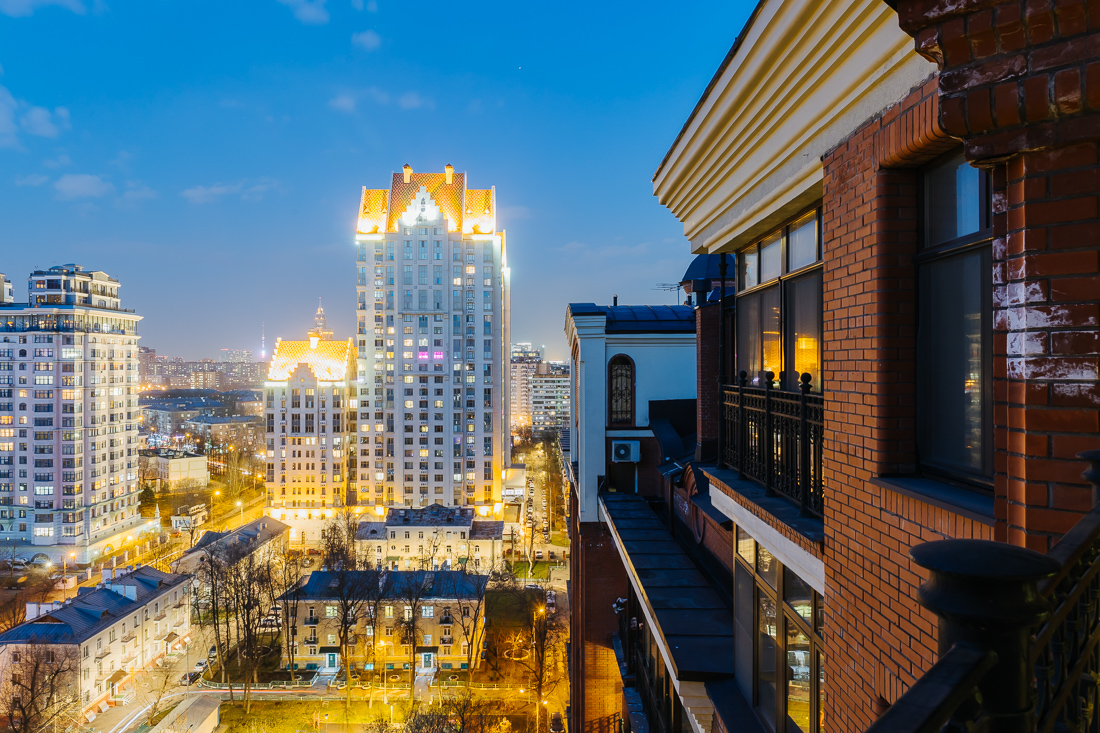 Единый видовой блок, расположенный на трех верхних уровнях: 16 этаж-220,3 м2, 17 этаж – 79,1 кв.м., 18 этаж- 91,6 м2