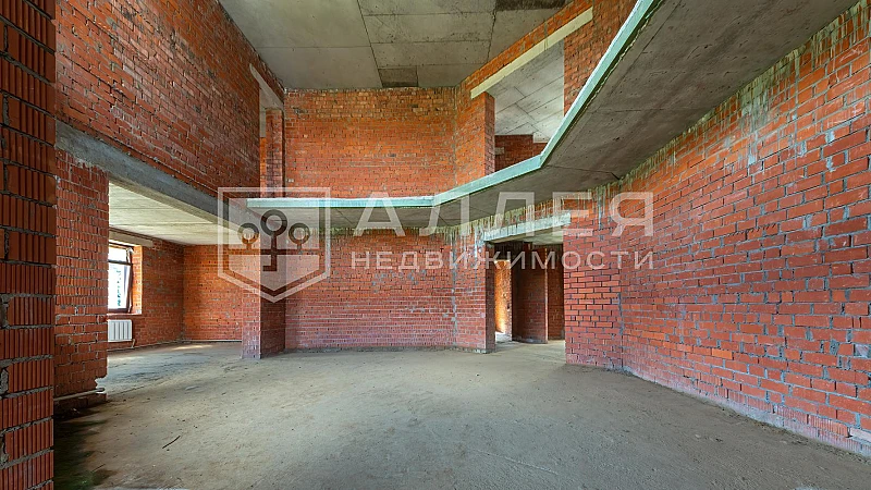 Кирпичный дом под отделку на видовом участке 25 соток в поселке премиум класса Крона. Из окон открывается вид на парковую и прогулочную зону поселка. Гостиная с панорамным остеклением, вторым светом и восьмиметровыми потолками. Главный входной фасад оформлен колоннами. Планировка дома позволяет разместить: SPA комплекс с хамамом, бассейн, домашний кинотеатр, винный погреб, тренажерный зал и бильярдную. На первом этаже есть спальня или кабинет. Все центральные коммуникации заведены в дом. Из дома есть выход в гараж на два автомобиля. Все соседи построены и проживают круглогодично.