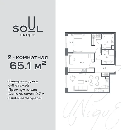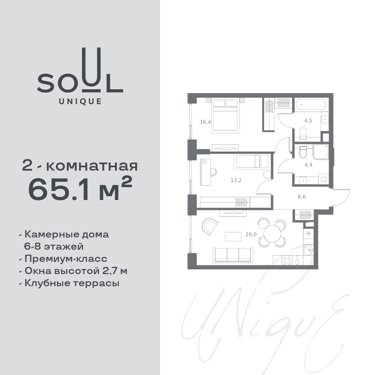 Купить 2к квартиру 65 м² в ЖК Soul (Соул)