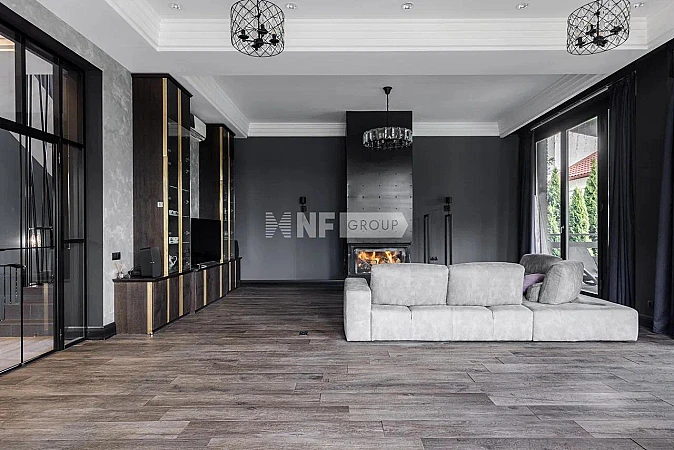 В доме вы найдете 6 спален, просторную гостиную, кухню, современный кинотеатр, кабинет для работы или отдыха и сауну.