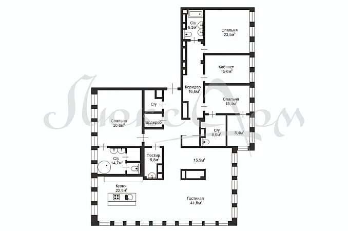 На данном этапе СПЛАНИРОВАНО: большая гостевая зона с кухней и столовой, мастер-спальня с с/у и гардеробной, 2 детские спальни, каждая - с с/у и гардеробной, кабинет/спальня, гостевой с/у, постирочная, гардеробная.