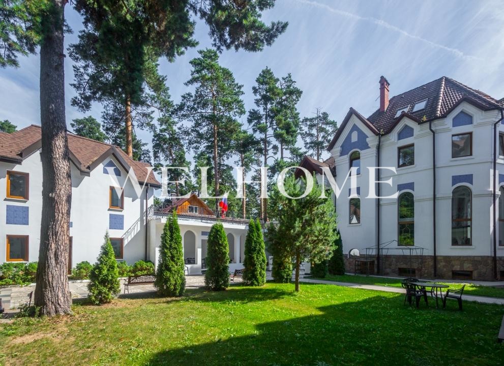 Красивая усадьба для большой семьи, общая площадь строений 1167 кв.м., со своим выходом в лес. Материал стен – первый этаж- кирпич, второй этаж – клееный брус 200 на 200. Железно-бетонные перекрытия. Дом 851кв.м разделен на две зоны- основная 600 кв.м и гостевая зона 250 кв.м , соединенные между собой спа-комплексом. Гараж двухэтажный общей площадью 316 кв.м. на 5 машиномест.