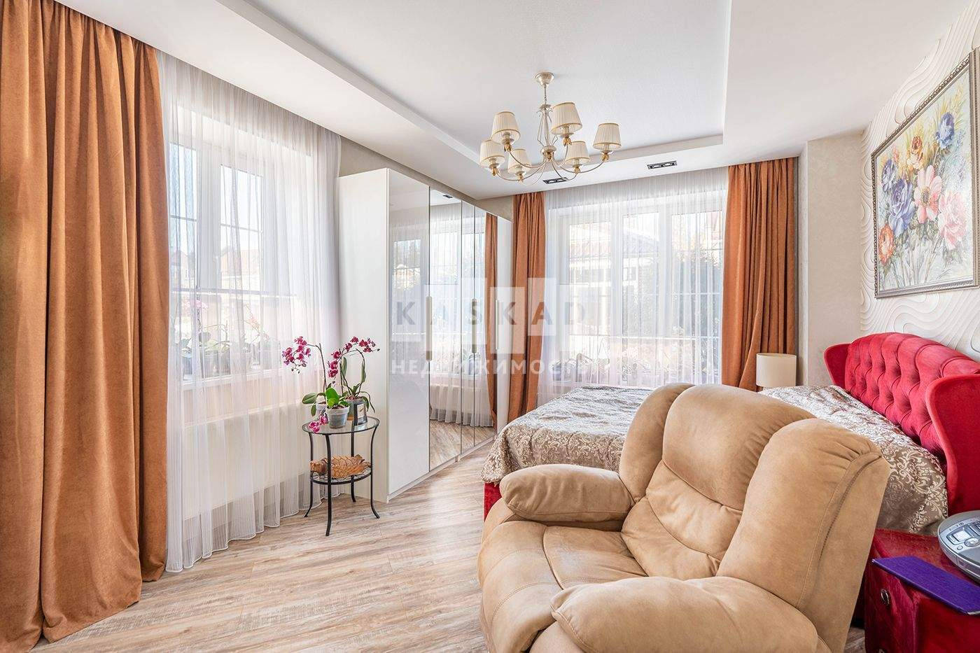 2 этаж: большая мастер-спальня с вместительной гардеробной и санузлом, кабинет;
