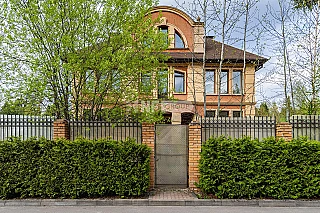 На участке летнее барбекю, домик для персонала, парковка на 2 м/м, оборудованная детская площадка.