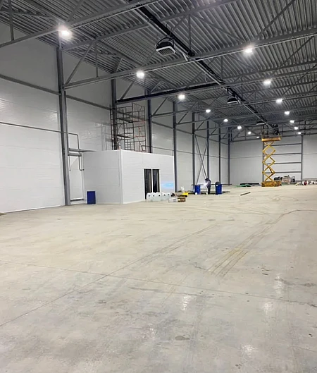 Лот №739107 Продаётся новое производственно - складское здание площадью 1940 м2. Свободная планировка без колонн, высота потолков 8 м, длина 67 м, ширина 24 м, бетонный пол с антипылевым покрытием, двое ворот 3 на 4.5 м, своя газовая котельная, пожарная сигнализация, вода - скважина с системой водоочистки и фильтрации , канализация - автономный септик, электрическая мощность 150 кВт. Есть административные помещения площадью 424 м2. Огороженная охраняемая территория, асфальтированная территория 30 на 150 м перед зданием с удобным разворотом для еврофур, парковка, КПП, система видеонаблюдения. Видео по запросу.