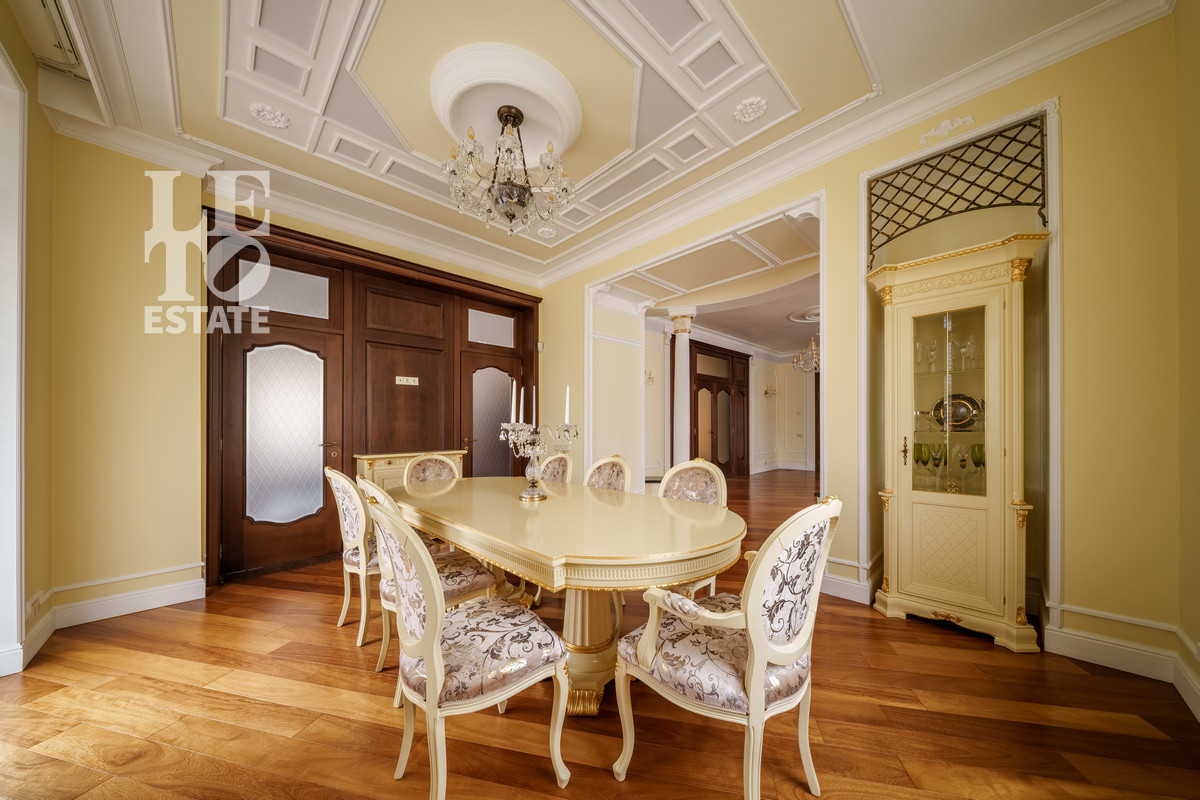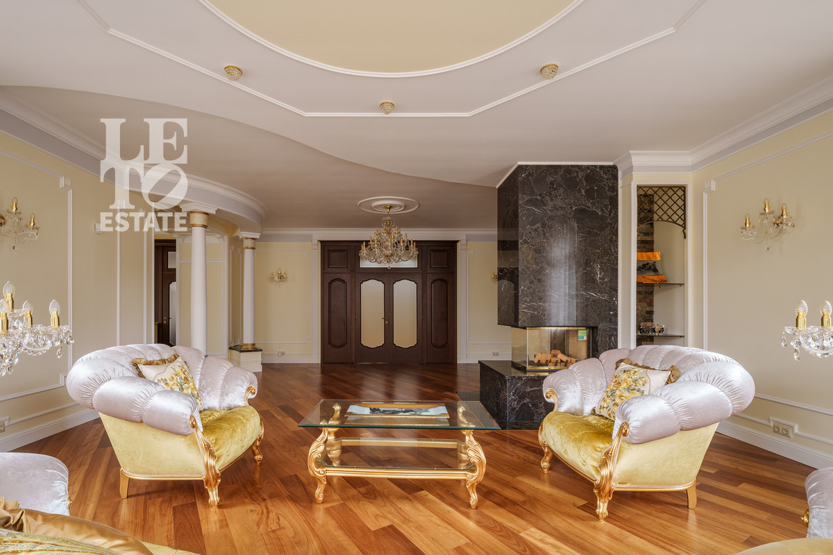 В доме выполнен авторский дизайн в элегантном классическом стиле и благородных тонах, подчеркивающих его статус. В интерьере были использованы современные материалы в сочетании разных фактур: декоративная штукатурка, керамогранитная плитка, лестница из мрамора, массив дерева. Дом полностью меблирован (уникальные и дизайнерские предметы интерьера и мебели), оснащен всей необходимой техникой. Планировочные решения позволяют максимально эффективно и функционально использовать все пространство дома, все продумано до мелочей. Из просторной зоны кухни-гостиной можно выйти на веранду, откуда открывается прекрасный вид на участок и журчащий пруд с декоративными рыбами.