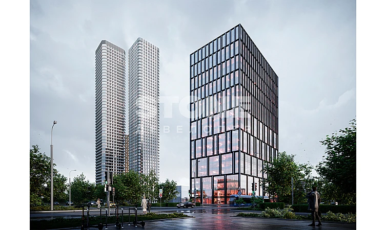 Архитектура от бюро IND. Проектом предусмотрена 23-этажная офисная башня с динамичным фасадом, а также торговая галерея с панорамным остеклением. Общая площадь бизнес-центра составит 49 тыс. кв. м.