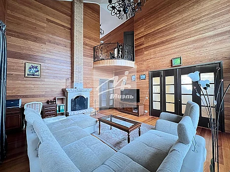 Продается трехэтажный дом, площадью 325 кв.м., предназначенный для постоянного проживания, расположенный на земельном участке 12 соток. Дом имеет цокольный этаж-подвал. Высота потолков более 3 м. Качественная отделка с наружной и внутренней стороны. Вода горячая и холодная, отопление во всех помещениях, электричество 16 кВт. В дом проведен магистральный газ. Пол на кухне, в коридоре и прихожей с подогревом. На первом этаже расположена кухня, большая гостиная комната с камином, санузел. На втором этаже три большие спальные комнаты, ванная комната, санузел. На третьем этаже (мансарде) две спальные комнаты, гардеробная, комната отдыха с бильярдным столом, санузел. В цокольном этаже оборудована котельная, спортивный зал, помещение для хранения продуктов. Также на участке имеется отапливаемый бревенчатый двухэтажный гостевой дом, с большой кухней, гостиной комнатой и двумя спальными комнатами. В отдельно стоящем доме оборудована летняя кухня — столовая и баня с комнатой отдыха. Вся территория участка уложена брусчаткой, оборудованы газоны, на которых растут плодоносящие деревья (яблони, груши, сливы), туи, сосны. Оборудовано место для приготовления шашлыка и барбекю, установлена большая теплица для выращивания огурцов и помидор. В темное время суток территория освещается фонарями. Установлено видео наблюдение. Отличная природа, развитая инфраструктура, удобное транспортное сообщение с Москвой по Можайскому или Минскому шоссе, а также железной дороге (ж\д станция «Петелино» в пешей доступности) позволит комфортно проживать и отдыхать