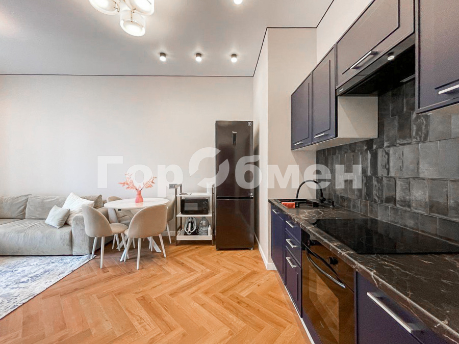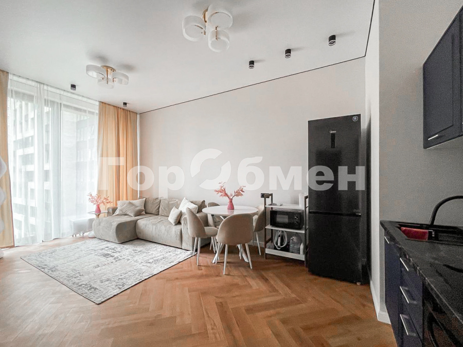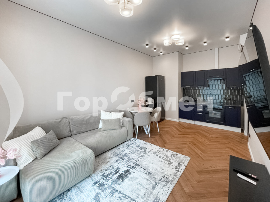 Квартира состоит из просторной кухни-гостинной, светлой спальни, совместного санузла, гардеробной и оборудована всем необходимым для жизни. Понорамные окна обеспечивают большое количество естественного света.