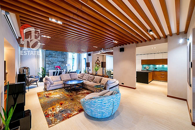 В доме использованы самые современные строительные и дизайнерские решения. В доме общей площадью 313 кв.м выполнена дорогая внутренняя отделка, изысканный интерьер, установлена вся необходимая мебель и бытовая техника премиальных брендов. Дом оборудован современной системой кондиционирования и приточно-вытяжной вентиляцией, что позволит поддерживать приятный климат в помещении в любое время года. Планировка дома разработана с учетом оптимальных решений, чтобы соответствовать Вашим потребностям в просторе и комфорте. В данный момент ведутся строительные работы по возведению СПА комплекса с бассейном площадью 430 кв.м, разработанного на основе интегрирования к существующему дому, выполнены бетонные и кладочные работы, проведены подготовительные инженерные работы для комфортного проживания в доме на момент реализации проекта.