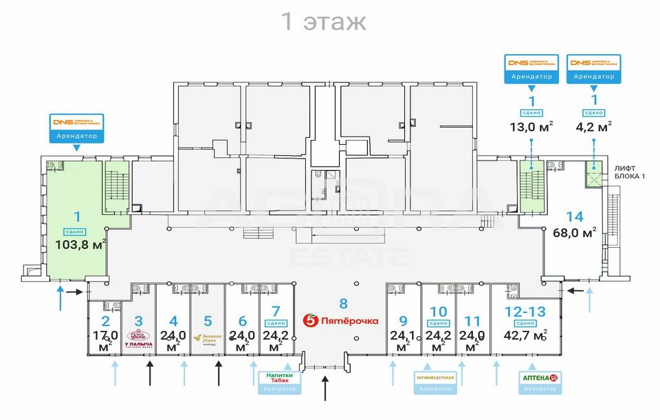 Аренда торгового помещения на выходе из метро Рязанский проспект, менее 1 минуты пешком. Помещение общей площадью 24 кв.м (блок 11 на плане) расположено на 1-м этаже жилого 12-ти этажного дома. Интенсивный пешеходный поток. Развитая инфраструктура, крупный жилой район. Отдельный вход с фасада. Высота потолков 3,0 м. Железобетонные перекрытия. Планировка - открытая. Помещение подготовлено под чистовую отделку. Новые большие витрины. Отлично подойдёт под любой вид деятельности - торговое помещение, магазин, аптека, салон красоты, офис продаж, медицинский центр, кофейня и др. Объект № 549577Номер объекта: #5/549577/310