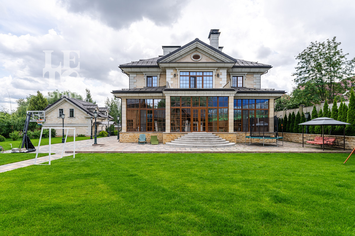 На участке также расположен гостевой дом с тремя спальнями, кухней-гостиной и санузлом, с помещением для персонала, с гаражом на 4 м/м. Котельная-бойлерная с двумя газовыми котлами BUDERUS, с отдельным входом. В доме полностью выполнена отделка "под ключ".
