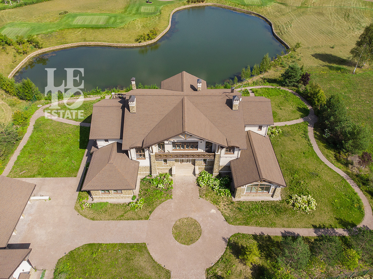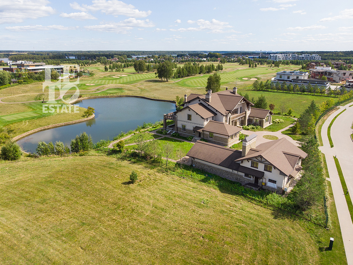 Дом расположен на великолепном ровном и видовом земельном участке на самом берегу декоративного озера. С участка, а также из большинства комнат дома открывается великолепный вид на озеро, а также на гольф-поле.