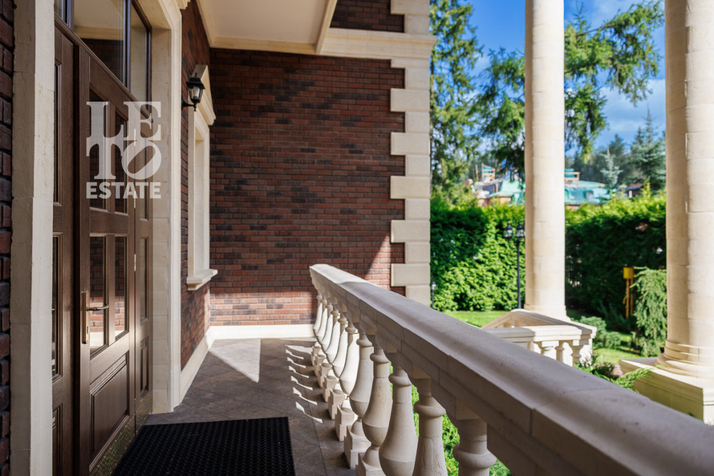 Дом полностью построен, внутри сделаны все черновые работы. В некоторых помещениях выполнена и финишная отделка. Установлена система приточно-вытяжной вентиляции. Особенностью данного дома являются большие и объемные светлые помещения, рассчитанные на комфорт своих владельцев и имеющие прекрасные видовые характеристики. Первый и второй этажи изобилуют террасами с видами на декоративное озеро и гольф-поле.
