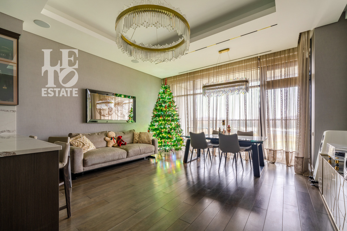 Состояние хорошее, дизайнерский ремонт, полы - паркетная доска. 3 лоджии, кондиционеры, панорамный вид из окон, кухонный гарнитур и вся мебель из Италии.