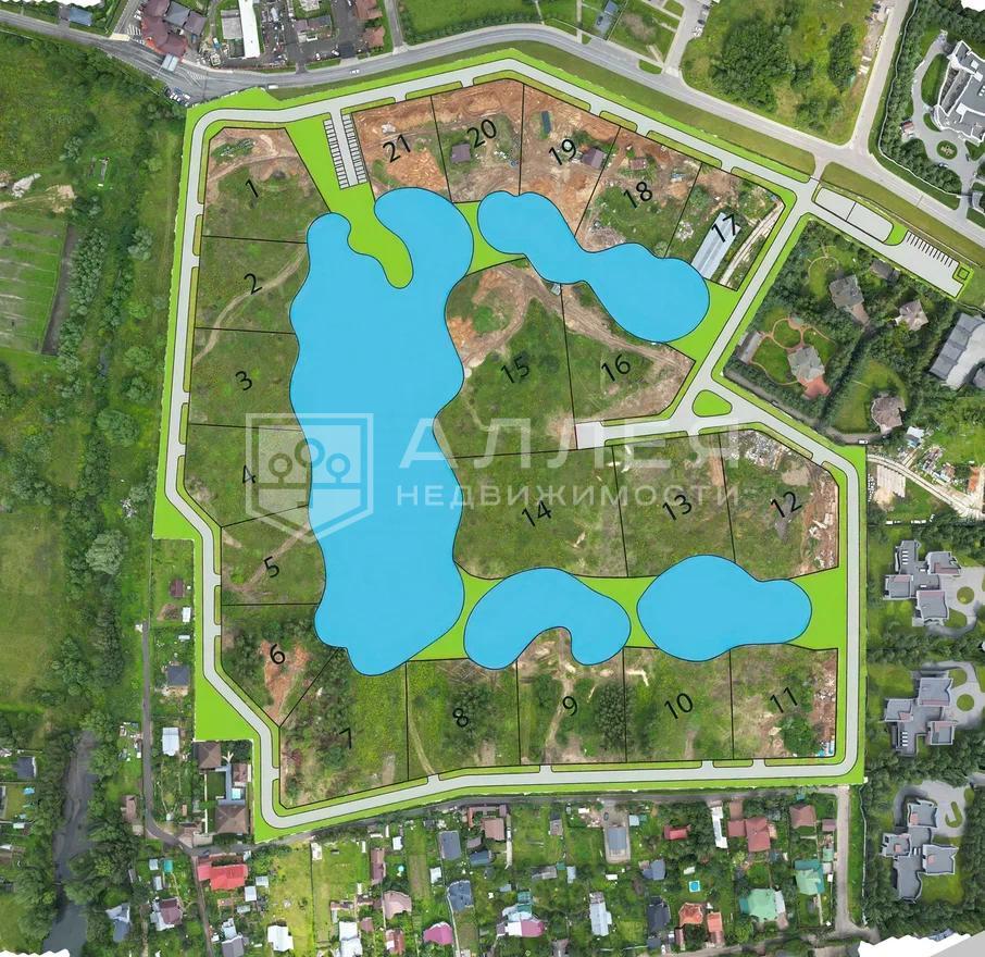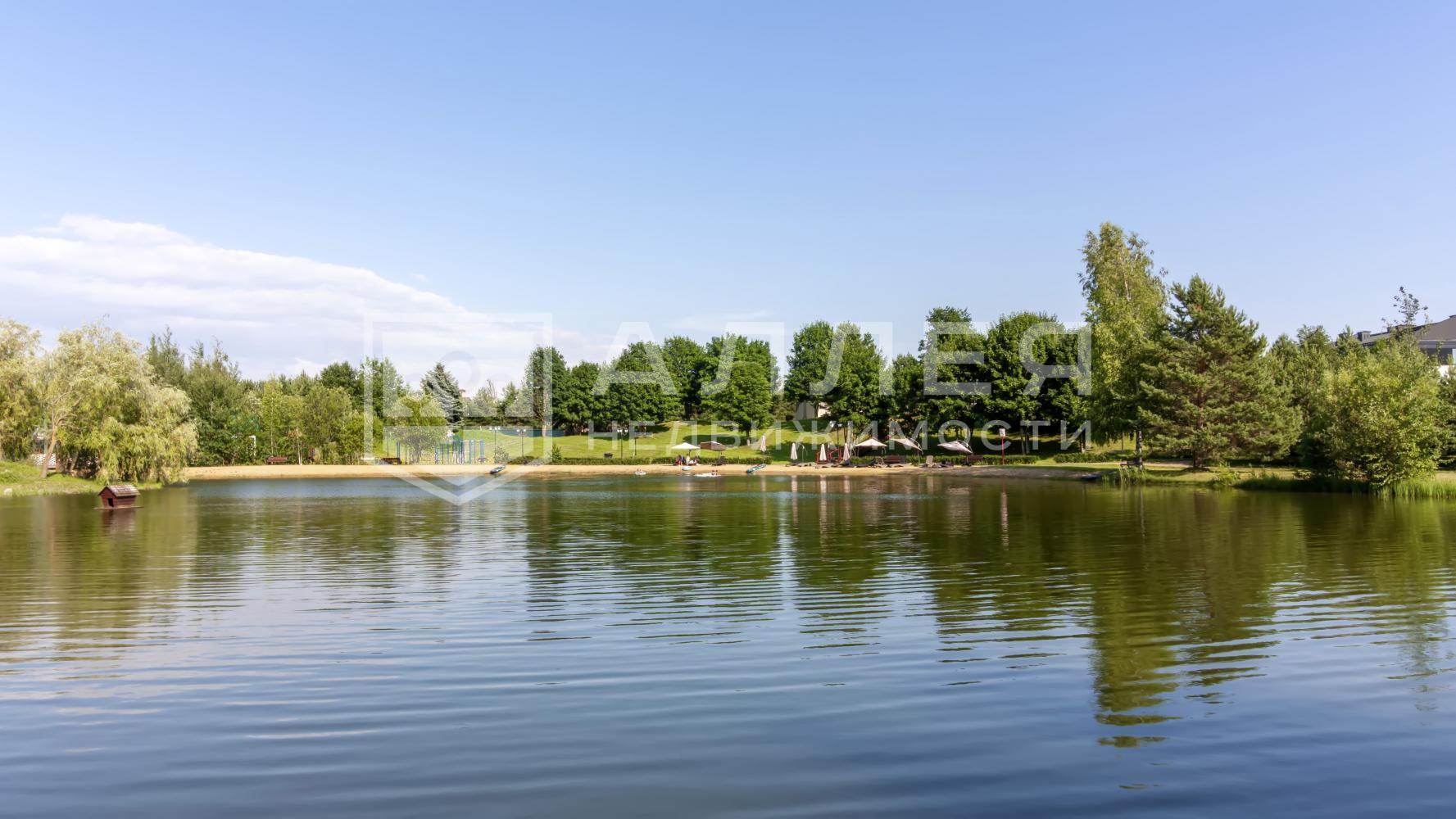 Клиновидный участок у воды, с подрядом, в закрытом коттеджном посёлке на Новорижском шоссе