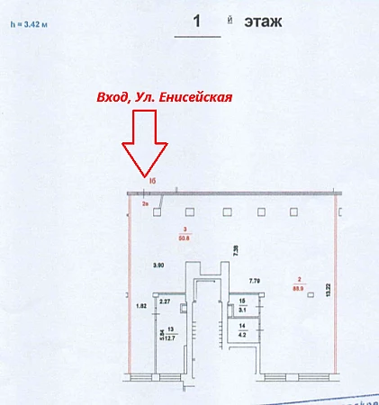 Площадь: 163 м. Вход: отдельный с первой линии по Енисейской ул., предусмотрен пандус для маломобильных групп населения.