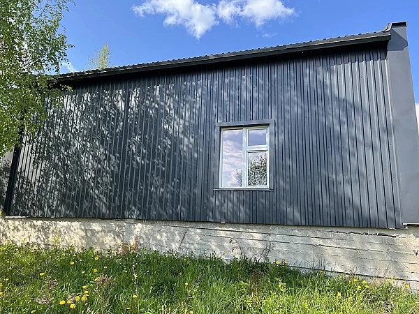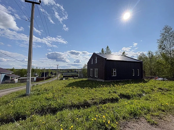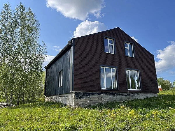 2-х этажный Дом 140 кв. м. в скандинавском стиле в Дмитровском районе, д. Сазонки, из газосиликатных блоков, утеплен. Дом снаружи отделан профильным листом + виниловые панели Docke, утеплитель стекловата 50 мм, установлены стеклопакеты, входная дверь, окна в гостиной во весь рост, что позволяет наслаждаться открывающимся панорамным видом с участка.