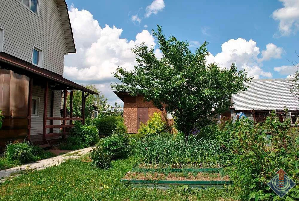 Земельный участок 627 кв. м. Ровный, сухой, прямоугольной формы 30 х 20 м. По периметру участка сетка-рабица. Вдоль дороги - въездные металлические ворота, калитка и забор из деревянного штакетника. С трех сторон доброжелательные соседи. Территория участка обработана. Садовые дорожки из плит проложены меж аккуратно высаженных плодовых деревьев, декоративных и ягодных кустарников, клумб. На клумбах цветут ирисы, пионы, астильбы, розы, гортензии, жасмин и др. . На лужайках молодые плодоносящие яблони, сливы, крыжовник, смородина, малина, жимолость. Напротив дома огородные грядки с зеленью и овощами. На приусадебном участке бытовка, предназначенная для хранения садового инвентаря и инструментов.