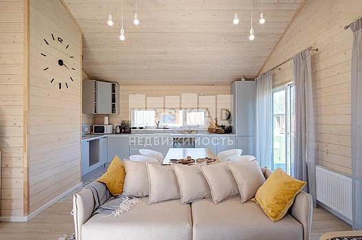 "Дом 115 кв.м. на участке 3,93 сотки в стильном коттеджном поселке рядом с г. Истра. всего в 43 км от Москвы по скоростному Новорижскому шоссе. 4 спальни, 3 санузла, 2 этажа.