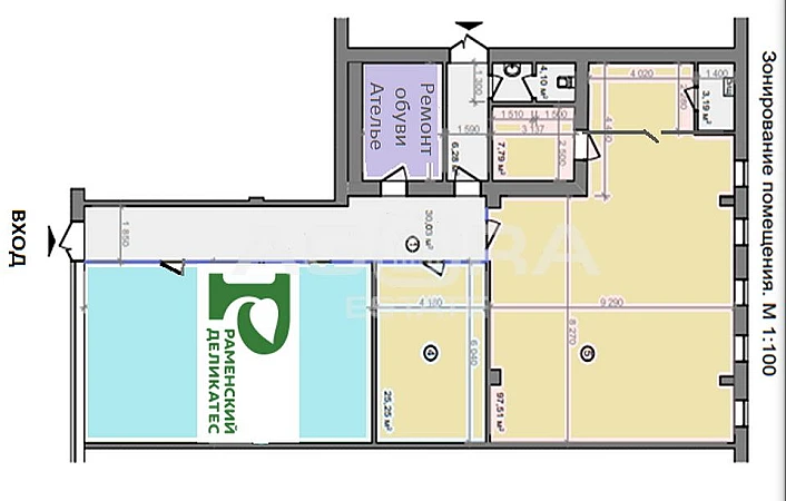 Площадь 100,55 кв.м, полностью на 1-ом этаже встроено-пристроенного помещения к жилому дому.