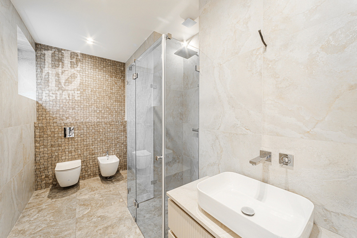 Санузлы оборудованы душевыми системами скрытого монтажа Grohe и душевыми стойками Hans Grohe, а также встроенными смесителями для раковин Grohe. Это не только обеспечивает комфорт и удобство, но и подчеркивает внимание к деталям.
