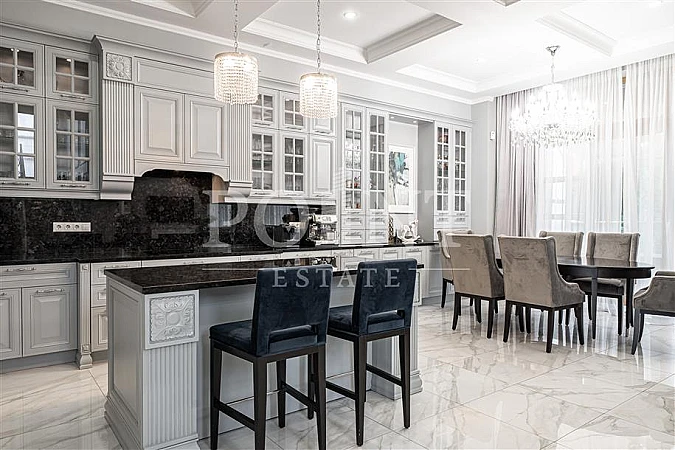 Лот: 111037. Вашему вниманию предлагается роскошный торцевой таунхаус площадью 324 кв.м, расположенный на угловом участке размером 5 соток в престижном коттеджном поселке «Парк Авеню». Внутреннее оформление таунхауса выполнено в стиле современного дизайна с использованием материалов премиум-качества. Дизайнерский ремонт продуман до мелочей, а стильная мебель от компании "DANTONE" добавляет изысканности и элегантности. На кухне установлена техника от ведущих мировых производителей, таких как "MIELE", "BOSCH" и "LIEBHERR", что делает процесс приготовления комфортным и приятным. Сантехника итальянского бренда "CEZARES" также подчеркивает высокий стандарт отделки. Участок правильной формы окружен многолетними туями, что создает атмосферу уединения и приватности.