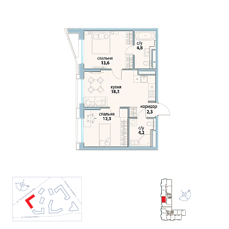 Купить 3к квартиру 69 м² в ЖК Тринити