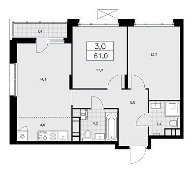 Купить 3к квартиру 63 м² в ЖК Тринити