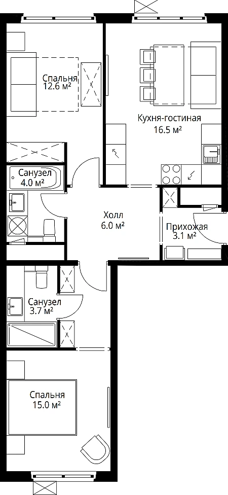 Купить 2к квартиру 41 м² в ЖК Аникеевский