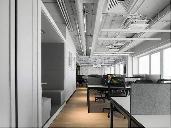 С мебелью. Приточно-вытяжная вентиляция. Центральное кондиционирование. Пожарная сигнализация. Интернет, телефония. Охрана. Видеонаблюдение. Система контроля доступа. Лифты: 4, Schindler. Подземная парковка.