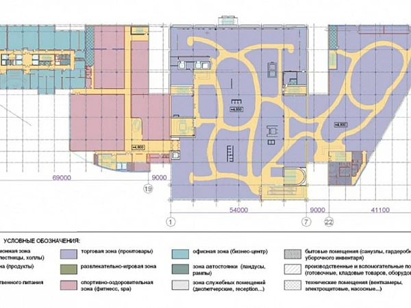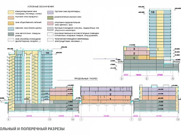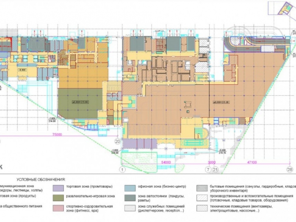 Парковка: Общая площадь трёхуровневой парковки 11698,9 кв. м. (в том числе 5427,6 кв. м. под торговым комплексом, 6271,3 кв. м. под бизнес центром).