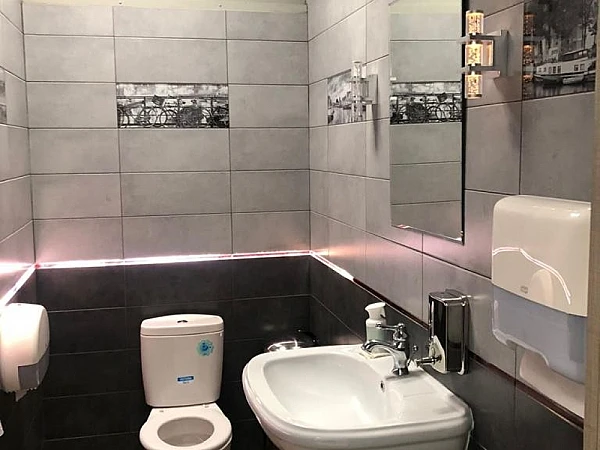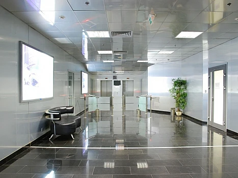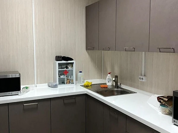 . Выделено красным на плане. Отдельный вход. Общая площадь 403м2, кабинетная планировка. Собственный с/у и душевые. Помещение подойдет под медицину. Установлены системы приточно-вытяжной вентиляции и центрального кондиционирование, 60квт выделенной мощности.