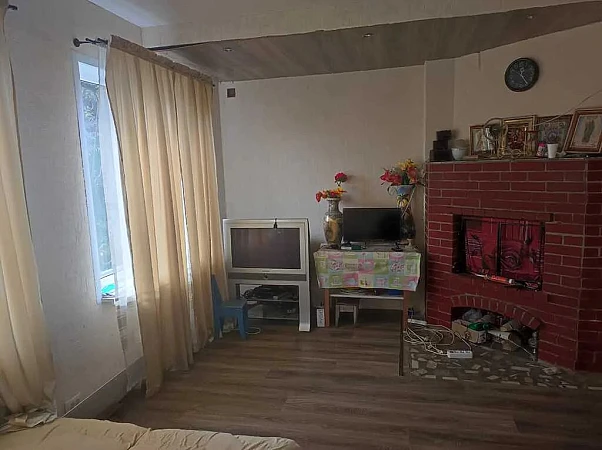 В доме на 1 этаже располагается кухня, гостиная, с/у. В гостиной стоит печь, которая на данный момент не функционирует и служит декором. При желании дымоход можно восстановить.