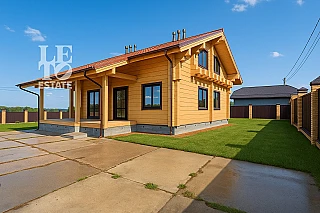 Коммуникации: Электричество 15 + 15 кВт (2 счетчика), 2 скважины (на дом и на баню), две станции биологической очистки (на дом и на баню), газ по границе (госпрограмма), отопление - электрический котел с разводкой по батареям и теплый пол.